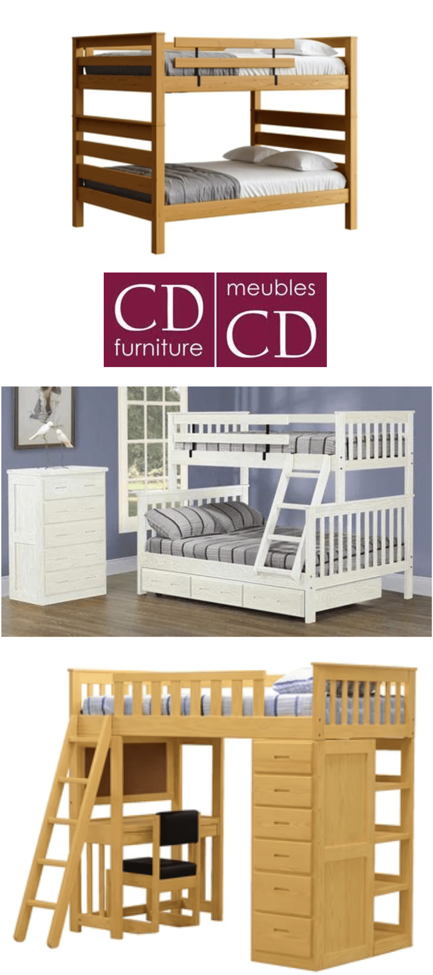 CD Furniture is a company that holds a firm belief in creating functional and safe furniture for families, with a particular focus on their impressive line of bunk beds. Their commitment to quality and craftsmanship is evident in every detail of their bunk beds. CD Furniture understands the importance of providing a safe sleeping environment for children, and their bunk beds are designed with sturdy construction and reinforced support to ensure the utmost safety and durability. With a dedication to innovative design and meticulous attention to detail, CD Furniture creates bunk beds that not only maximize space but also bring a sense of style and comfort to children’s bedrooms.
