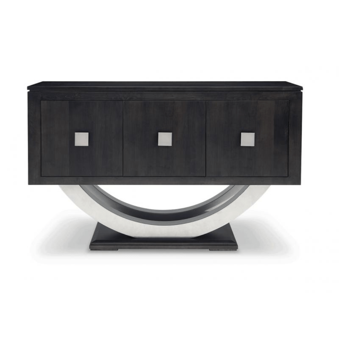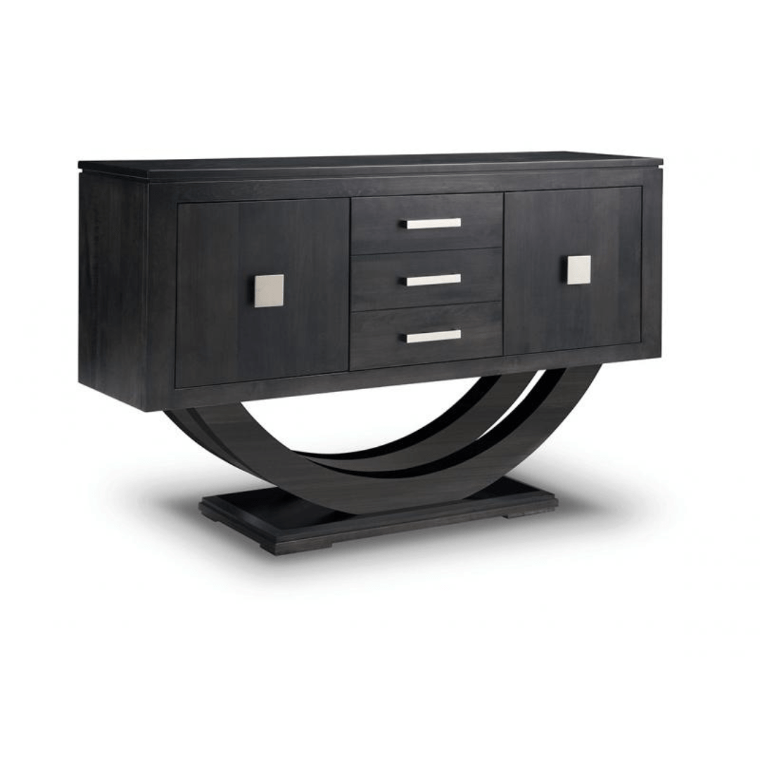 Clearly a departure from all furniture designs that have come before it, the Contempo Curved Sideboard collection strikes a steady profile with its solid foundation and geometric styling and crisp, straight lines.
