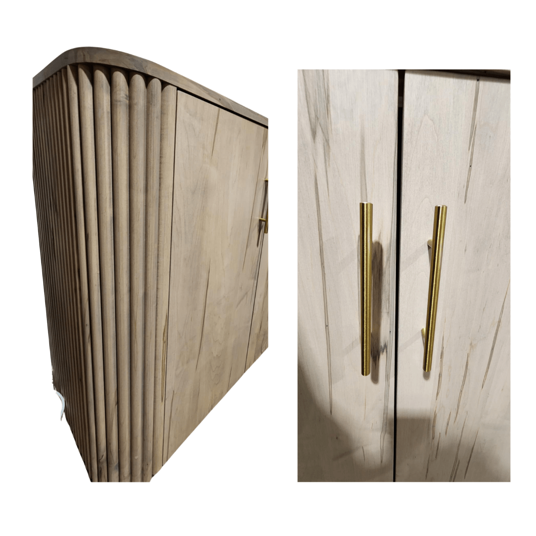A thoughtful blend of refined design and everyday practicality, the Fiona Server Sideboard is a stunning piece of furniture that brings warmth, structure, and elegance to any living or dining space. Constructed from solid Wormy Maple and finished in a custom stain that is no longer in production, this Fiona Server Sideboard stands as a true statement pieceâan heirloom-quality item that brings craftsmanship and character to the modern home.