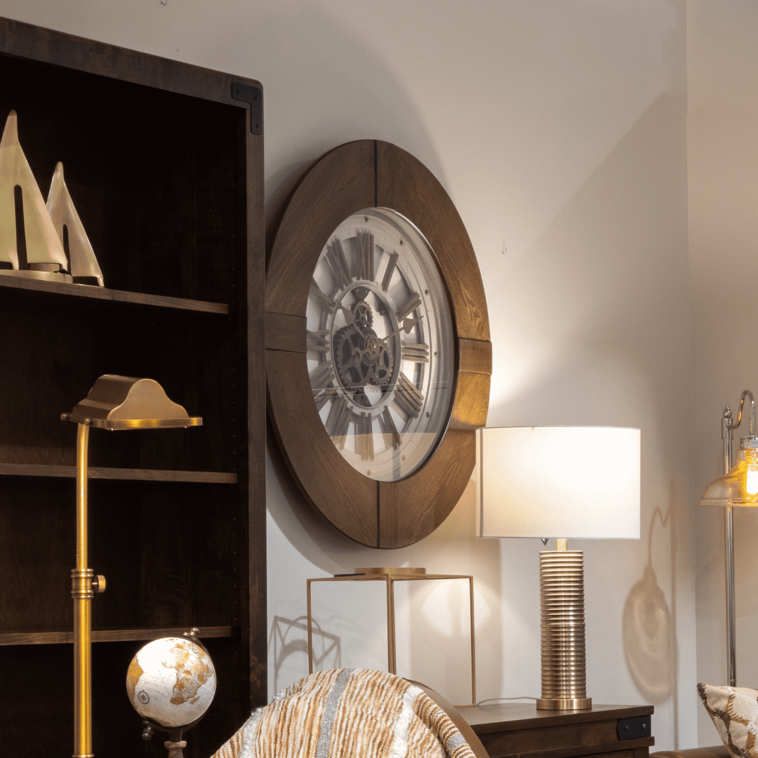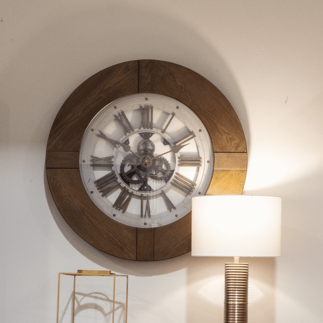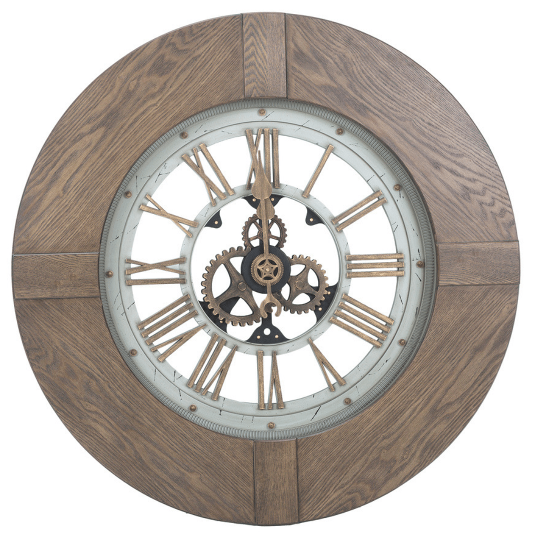 At the heart of this remarkable piece lies a 3mm glass face, offering a glimpse into its inner workings. The open gear design, reminiscent of intricate machinery, invites admirers to delve deeper into its captivating intricacies. Crafted with precision and care, the clock’s 36ā round wood ash veneer frame boasts a natural weathered finish, adding warmth and character to any space.