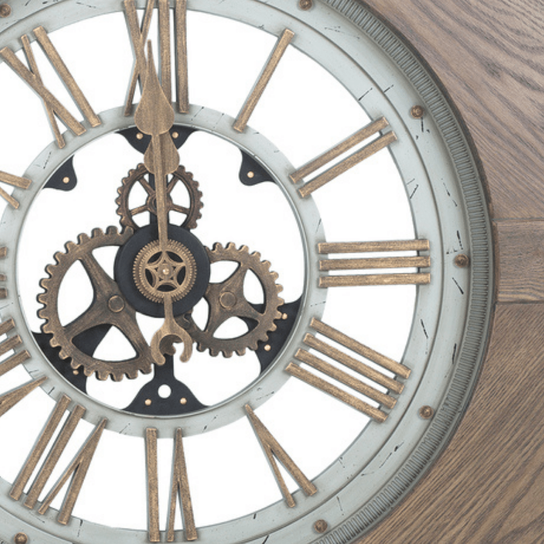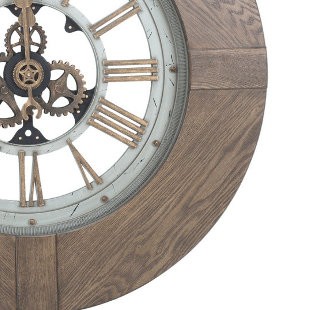 While the primary function of a clock is to tell time, its significance transcends mere practicality. A well-designed timepiece has the power to elevate the aesthetic appeal of its surroundings, turning the ordinary into the extraordinary. In the case of the ironwork wall clock with its open gear design and weathered wood frame, it exemplifies the art of balancing form and function, offering both visual allure and reliable timekeeping.